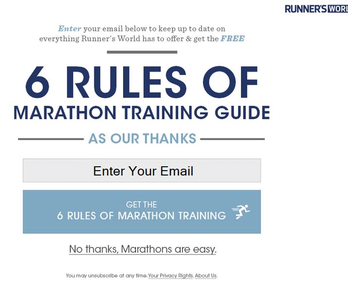 When it comes to be a runner, it can sometimes seem like a marathon is the only valid race to do. I went to the Runner’s World Web site to read an article about why the 5K is awesome. But before I could view the article, this advertisement popped up.